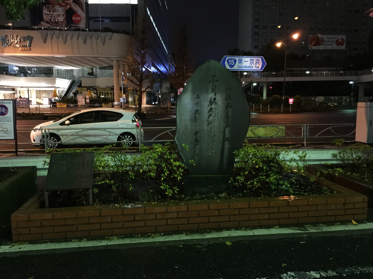 当初は新橋駅から横浜駅までが日本の最初の鉄道の予定でしたが先立って品川駅から横浜駅の区間で営業を開始しました。その記念碑がここです。品川駅は日本最古の鉄道駅と言うことですね。