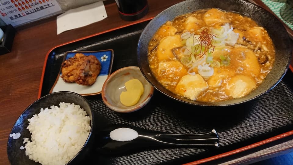 一番人気のAセット、麻婆おぼろラーメン(イカメンチつき)