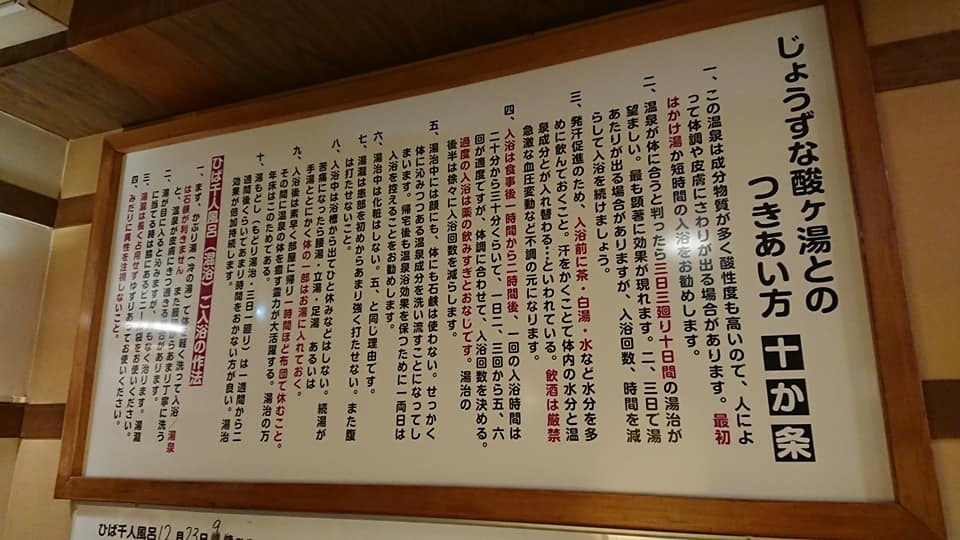 独特の酸性泉がよかったです。浴場内は撮影禁止だということですので、こういうった表示でどうぞ。酸ヶ湯温泉ですが、あまり長湯をしない方が良さそうです。かなりきつい。