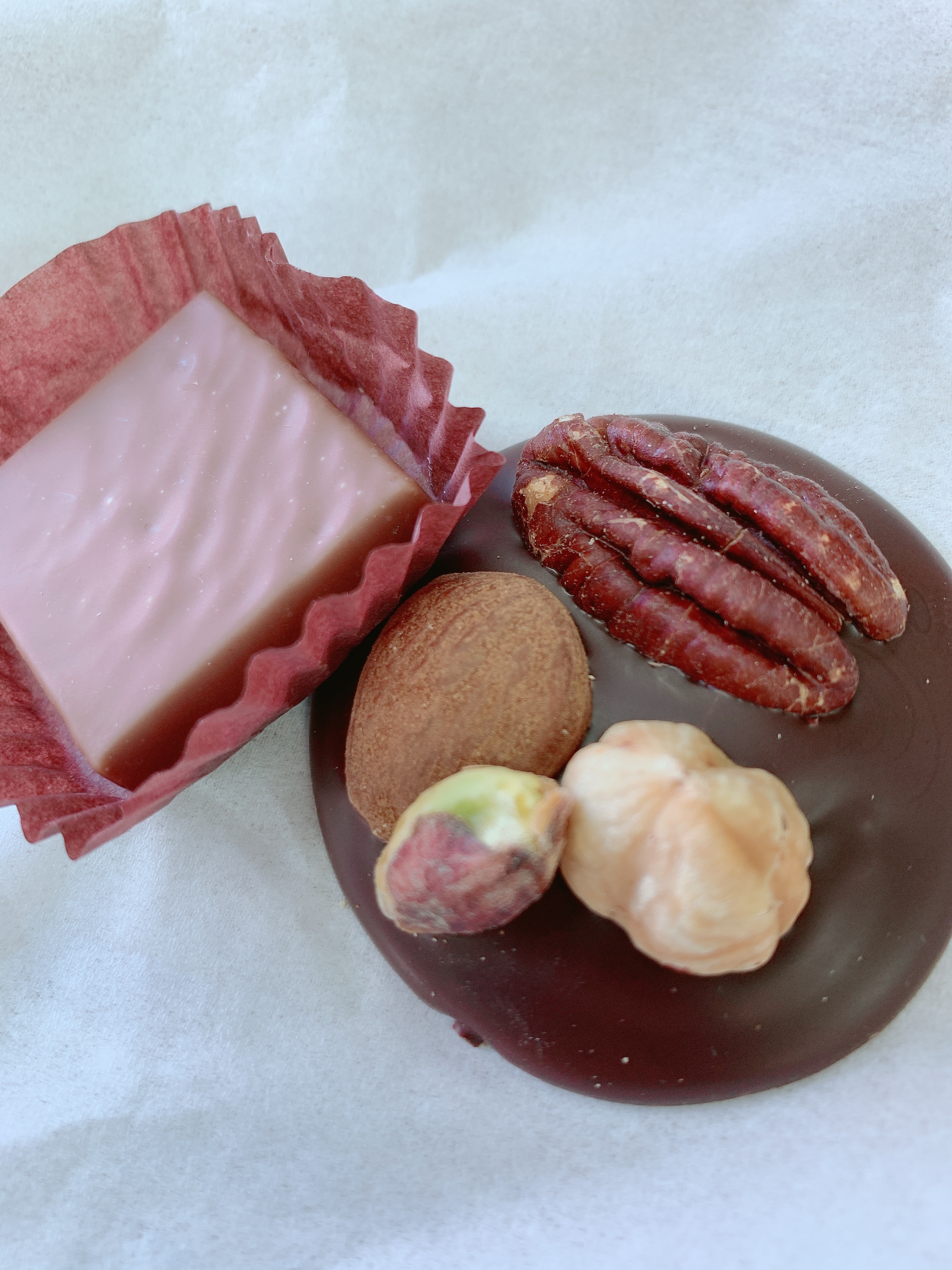 上本町にある有名なケーキ屋さんです。ショコラティエでもあり、カカオにはかなりのこだわりがあります。おいしいちょこは満足度が高いので一粒で十分ですね。アーモンド入りはビターなので大人味なのが特徴的でした。