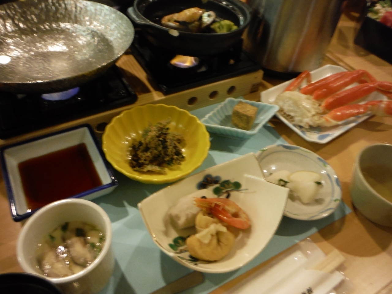 団体ツアーで飛騨高山で昼食。山の上のレストランに行きました。同じような大型バスが何台か並んでいました。長テーブルに向い合せに座り、狭苦しく雰囲気はあまり良くなかったですが私はそこそこ美味しく食べられました。飛騨牛のすき焼きは固形燃料で卓上で煮て食べました。