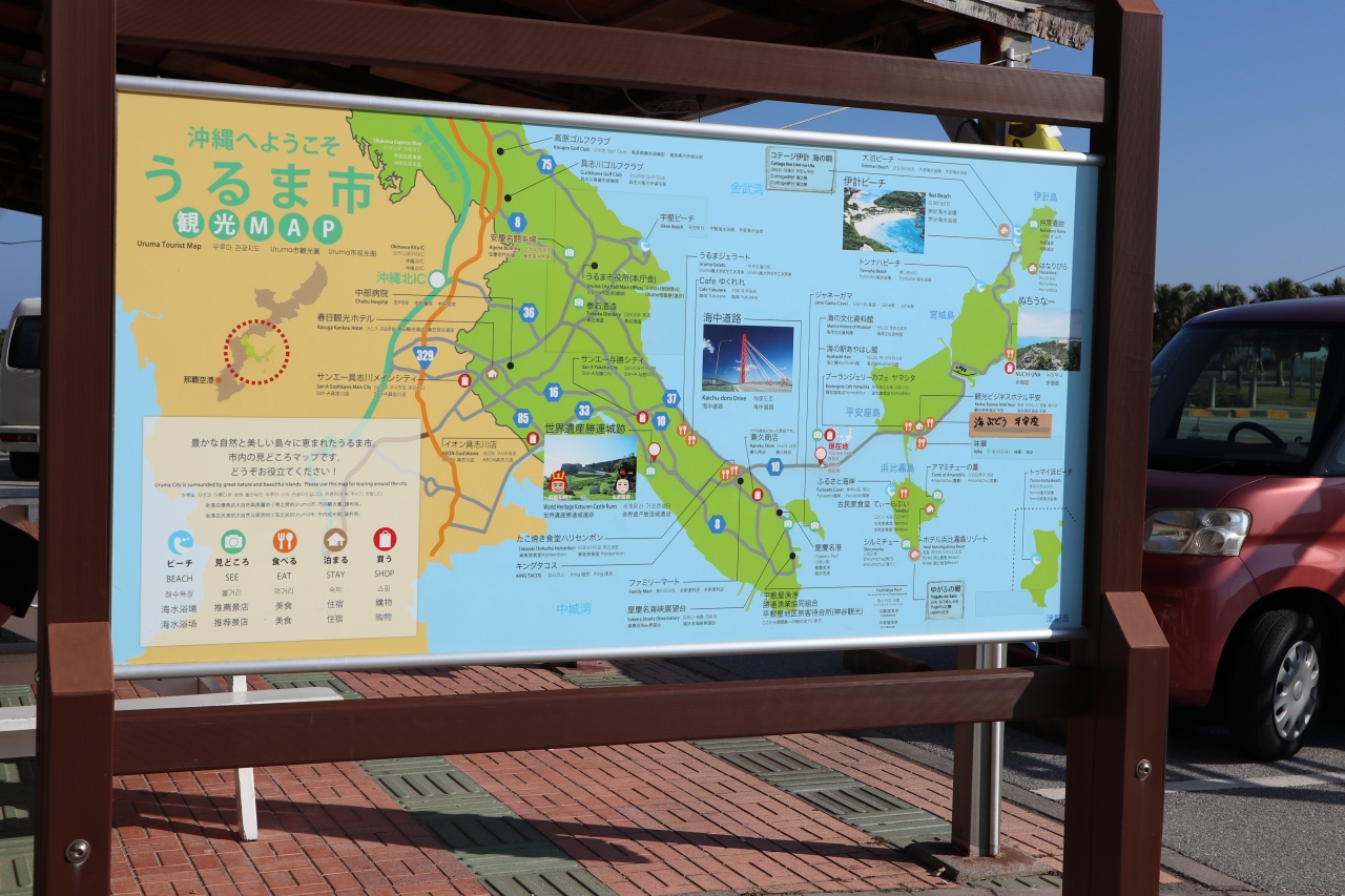 夫が海中道路をレンタカーで走りたいというので