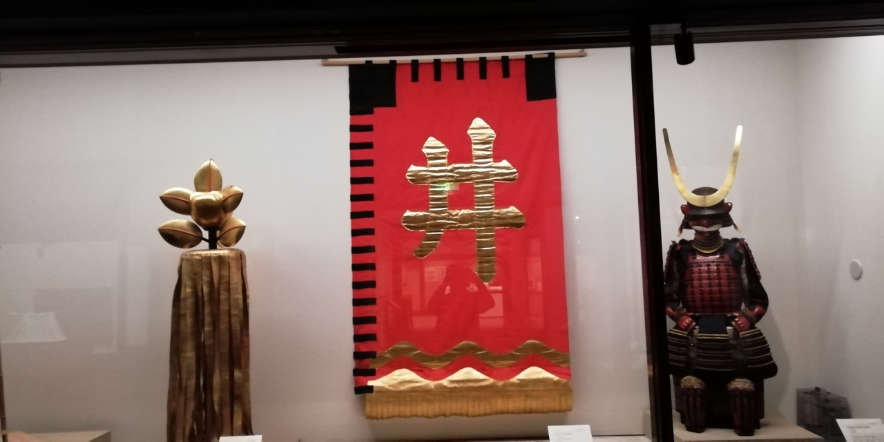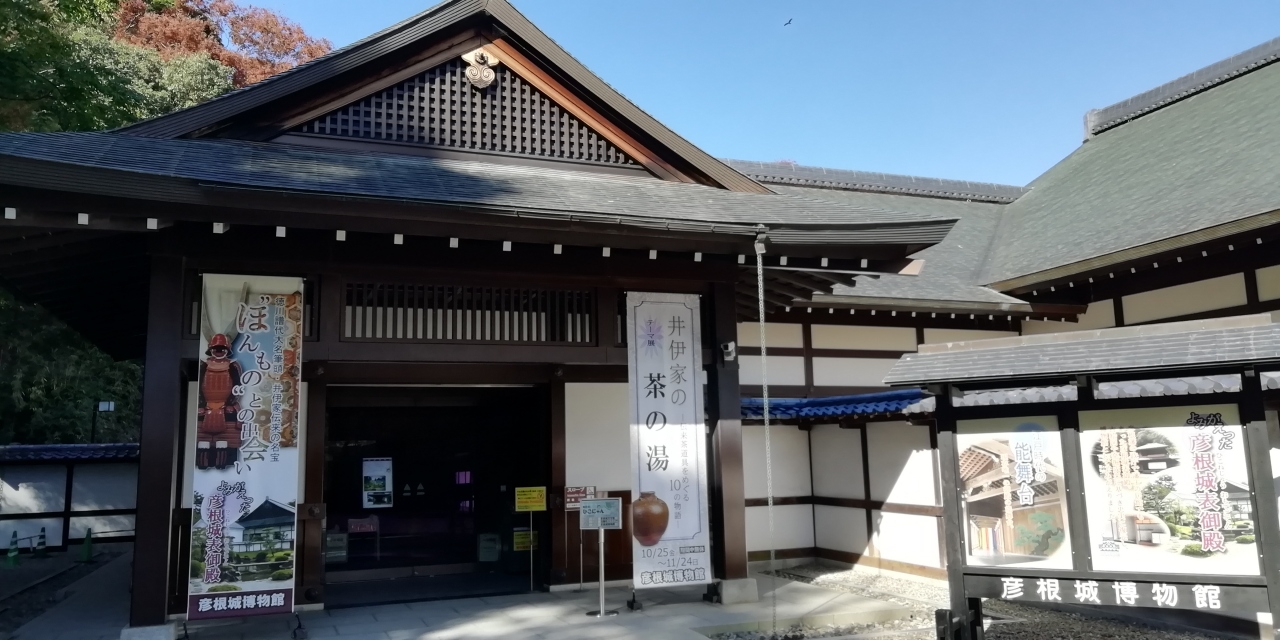 彦根城と玄宮園を見学後、最後に博物館を見学しました。博物館は江戸時代の表御殿を復元した建物です。大変綺麗な施設に井伊家伝来の甲冑、茶器などが展示されています。井伊の赤備えとして戦場を彩った朱色の旗や甲冑は特に目を引きます。多くの能装束と能面も展示され能舞台もありました。当日は「井伊家の茶の湯」というテーマ展を開催しており茶入れ、茶壷をはじめとする茶道具が展示されていました。展示室内に迫力ある大阪夏の陣図(若江合戦図)があり印象に残ります。展示室の最後にほうの別棟に御座之御間、御客座敷、庭園が復元されており当時の表御殿の生活の一旦が想像できます。見応えのある博物館です。