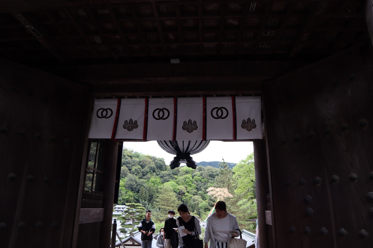 お土産もの屋などが立ち並ぶ長い参道を通り抜けていくと、階段の先に仁王門が現れます。どっしり重厚感のある立派な門がお出迎えしてくれます。長谷寺駅からこの仁王門までは早く歩いても20分くらいかかるでしょうか。