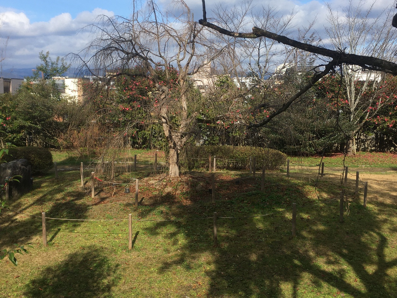 京都市営地下鉄東西線「東山駅」より徒歩で3分ほどです。青蓮院の北隣りの静かな公園で中央にべに枝垂れ桜の木があります。桜の時期には満開の花がとても美しいです。天気の良い日にはのんびりと花見をしている市民の姿をよく目にします。