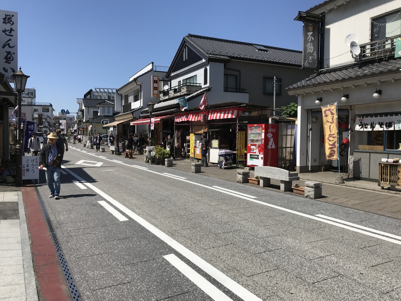成田駅から成田山新勝寺まで、約1km続いています。通り沿いには、土産物店や飲食店が並び、お店を見ながら歩けるので、実際の距離ほど距離を感じませんでした。場所によっては、昔ながらの建物が残る所もあり、趣が感じられました。鰻店も多く軒を連ねるので、名物の鰻をいただきました。