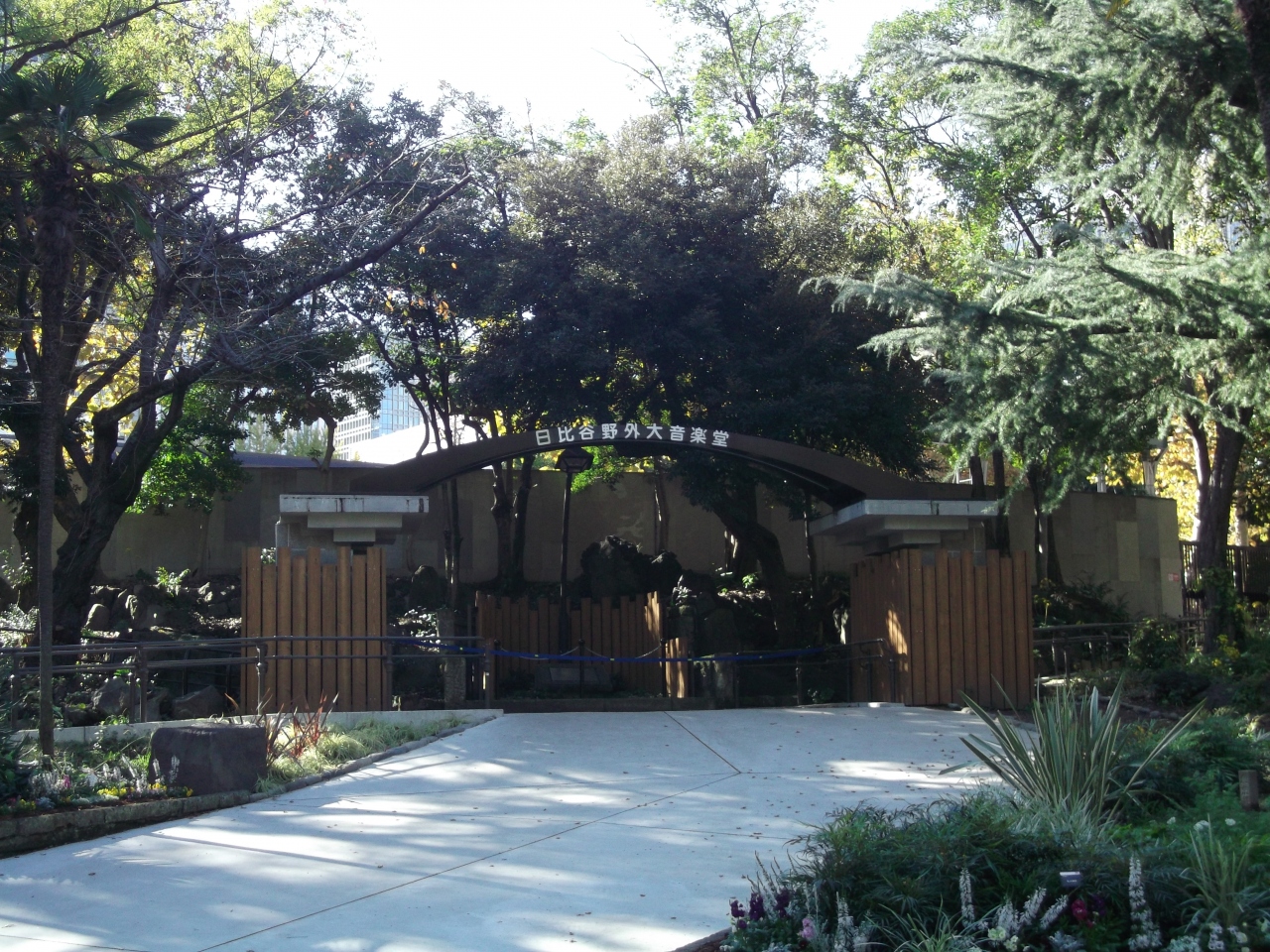 日比谷公園の南西側の端にある野外音楽堂です。コンサートや集会など色々なイベントが行われていて何回か入場したことがありましたが、今回は特に催しも行われておらず外観を眺めるだけで済ませました。歴史のある音楽堂でやや古びた印象をうけましたが、入り口の門には当時と変わらない姿があり懐かしく感じました。