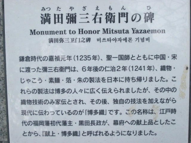 日本の中でも立地的に中国に近い博多界隈では、中国から伝来した物に関する記念碑なども見かけることが多いように感じますが、これもその一つで、今日の我々の生活に欠かせないメニューとなっていることも鑑みても、歴史的に非常に重要な碑だと思い、感慨にふけりました。
