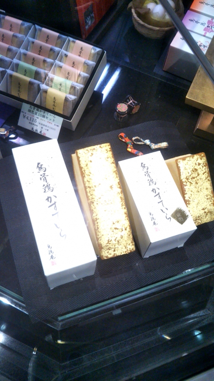 石川県金沢にて販売されていて、有名なカステラが日本橋三越本店でも販売されているということで、訪れました。ギフト用に購入しました。金箔のついたカステラで、烏骨鶏の卵を使用しています。華やかなので、御目出度い時はなどにとても喜ばれます。
