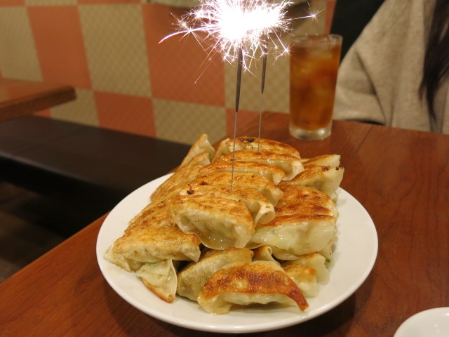 アプリを登録しておくと、誕生日に歳の数だけ餃子サービスの通知がきたので、利用しました。いろんな種類の餃子があって、食べ物の値段はリーズナブルだと思います。飲み物は比較するとちょっと高めかな?さいころを振ってぞろ目が出るとお得になるサービスもあるようです。