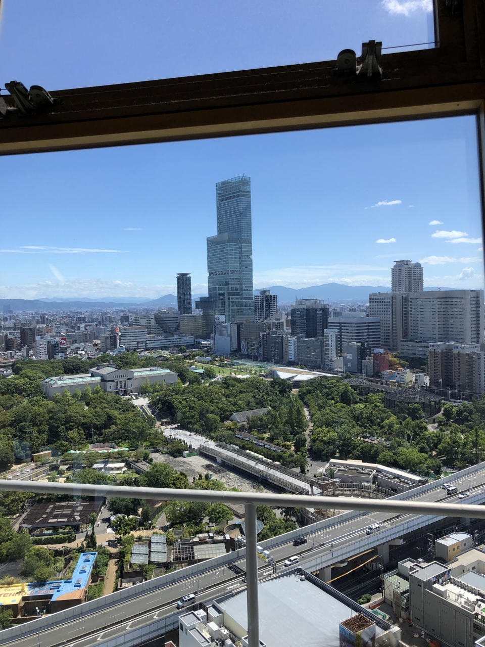 九州からの友人が行きたいというので、生まれてから何十年と大阪に住んでいながら初めて通天閣に昇りました。以前はインバウンド人気で外に長蛇の列ができていたのですが、とにかく中に入れて涼しい土産物店で並ばせようという商魂逞しさで、外で並ばなくても良くなりました。茶臼山を眼下にハルカスを見上げるのが時代を感じさせます。