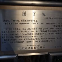 千駄木駅から神田白山線を西に行ってすぐの所にある坂が団子坂です。潮見坂、千駄木坂、七面坂とも言われる坂ですが、江戸時代に団子屋があったからとか、急坂で転ぶ人が多くその姿が団子の様だったかろという説があるそうです。