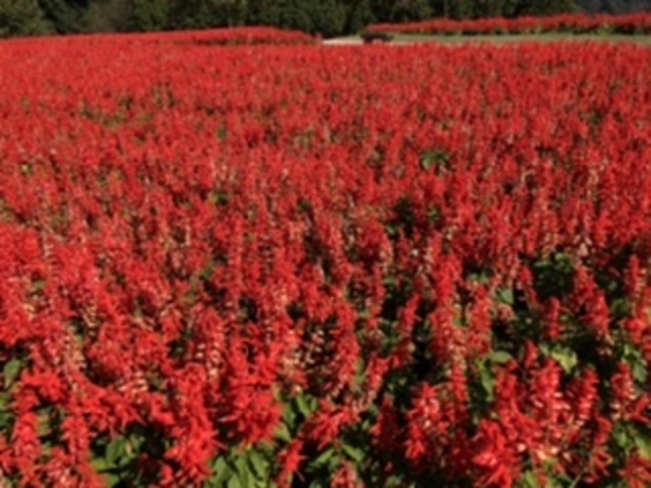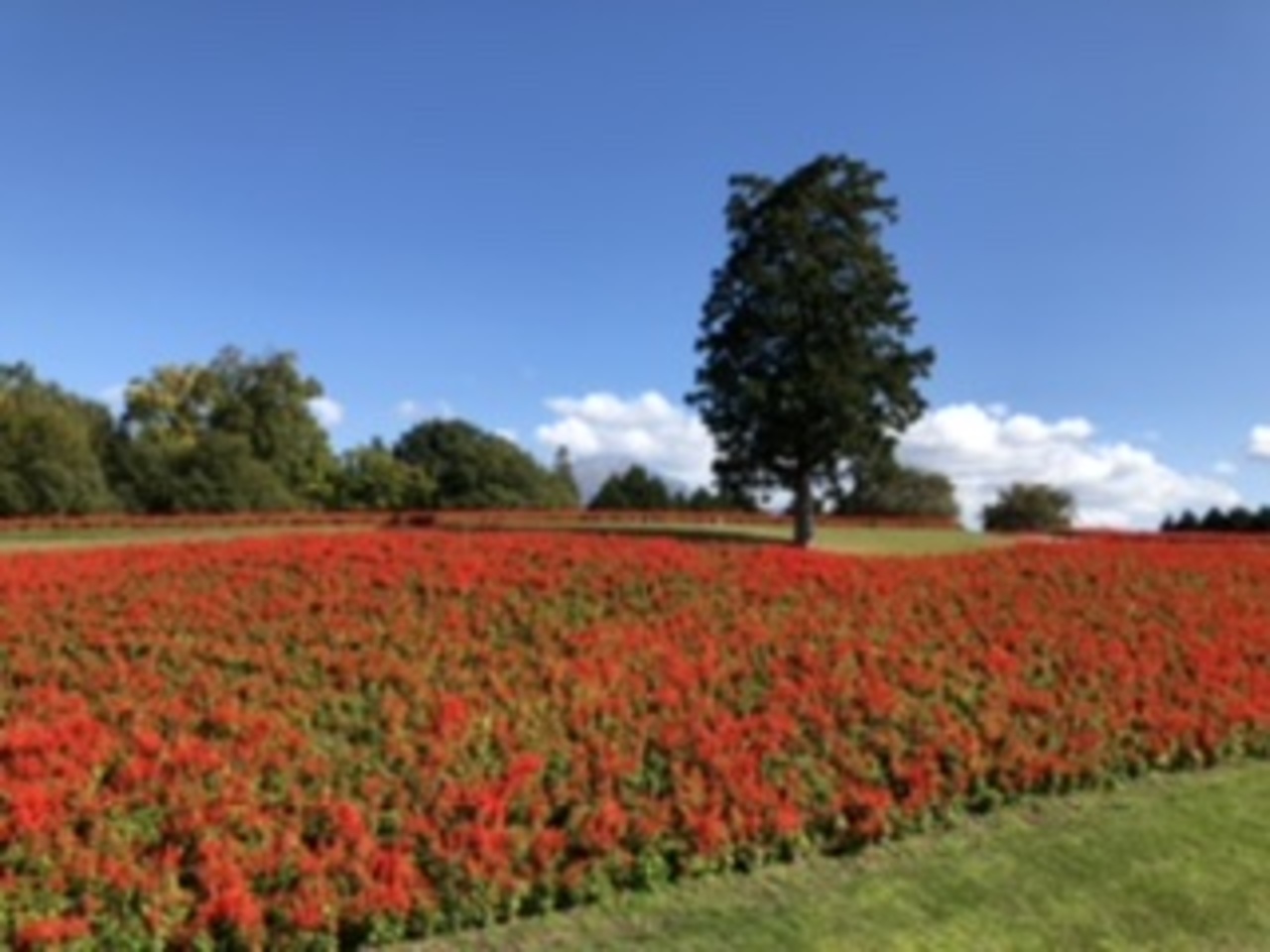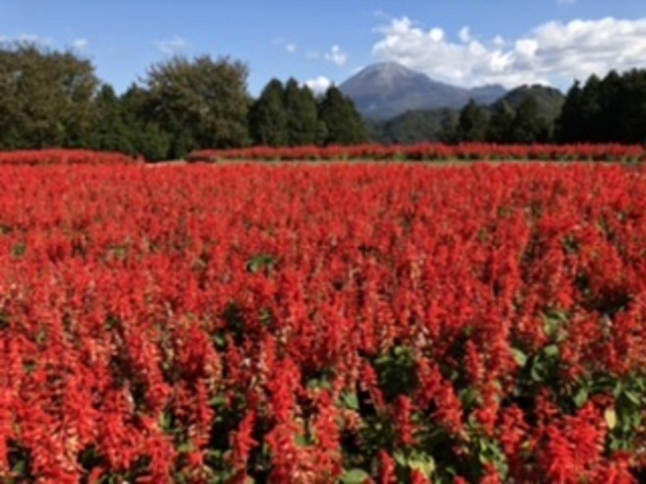 時期的なものもあるかと思いますが、思ったよりも花が少なかったのが残念でしたが、大山をきれいに見渡せるところに真っ赤なサルビアが咲き誇っていて、サルビアの真っ赤な絨毯越しに大山が望めるのが絶景でした。