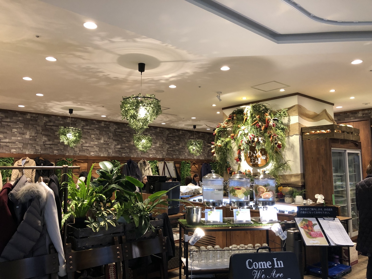 平日のお昼でしたが満席で賑わっていました。日比谷シャンテの地下2階にあります。やさいの王様定食を食べました。お値段1980円とランチの価格としてはかなり高額なのですが、野菜ビュッフェの種類が豊富なこと!普段食べない野菜がたくさんあるので栄養補給できました。野菜ビュッフェは食べ放題なのではなく、グラスのようなボウルに1回だけ盛り付けができます。