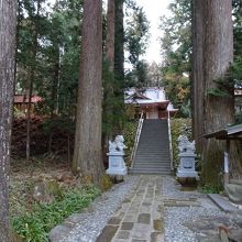 鳥居から本当に向かって続く参道は、巨大な杉の木が並び壮観です。どこの地域にもよくある無人の神社に比べれば大きいです。
