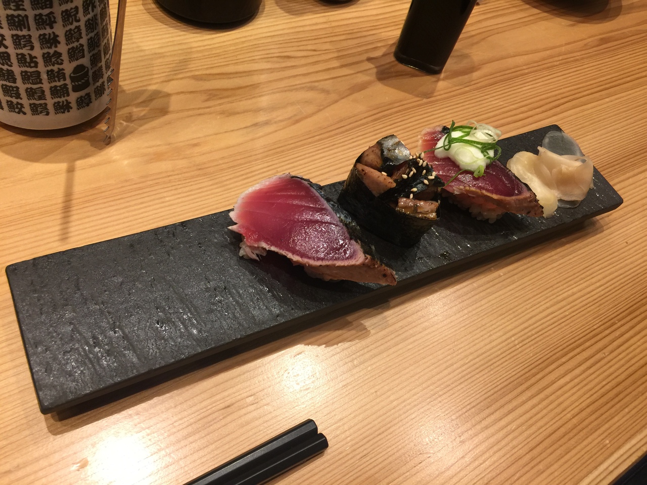 欲張りカツオは三貫、大トロビンチョウにマグロ、ハマチ、サーモン!美味しくいただきました!