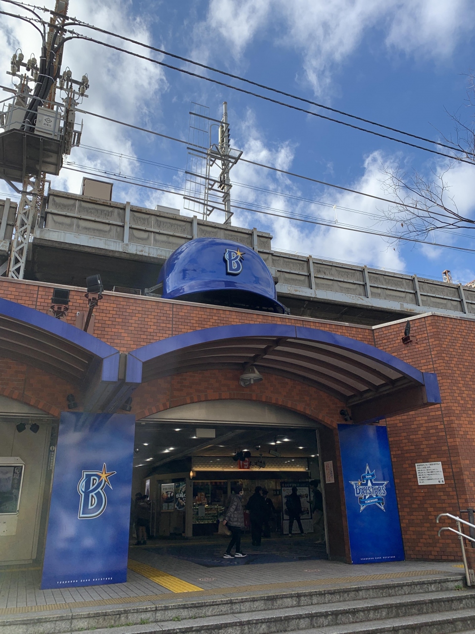 関内駅のベイスターズのオブジェもマリノスののぼりも威勢よく見えています。