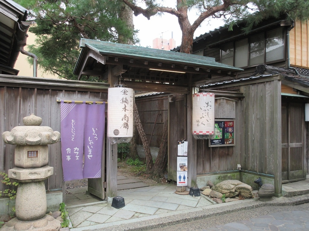 金沢を代表する繁華街である香林坊から西に少し入ると、武家屋敷の集まる一角があります。外国からの観光客に交じって徘徊していて立ち寄ったカフェがこちら。品のあるデザインの提灯がかけられた門をくぐると、それほど広いはありませんが、カフェースペースがありました。綺麗な器を利用した和風アフタヌーンティーを楽しませて頂きました。