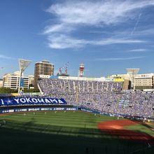 横浜スタジアムはJR関内駅から出てすぐのところにあり、交通も非常に便利です。