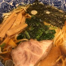 ちょっと厚いチャーシューが二切れ、ほうれん草が色合いを添える