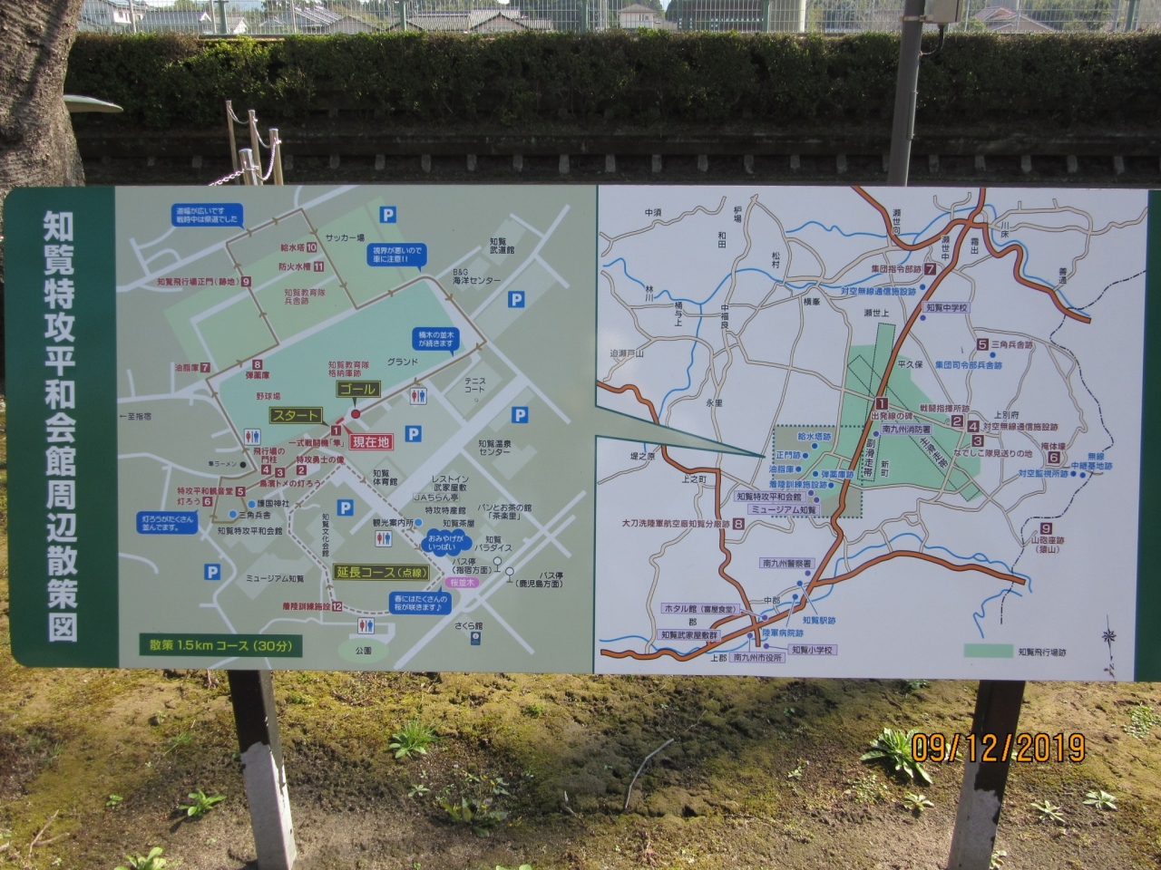 路線バスの終点で下車すると一帯が【知覧平和公園】になっています。まずはとても親切な真っ赤なお茶の急須と緑色のお茶が目印の【知覧観光案内所】でマップと説明を受けました。平和公園のメインは【特攻平和会館】ですが、【特攻の母の像】【特攻勇士の像】