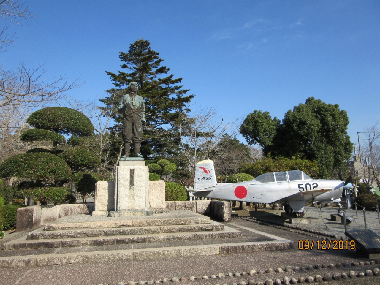 【一式戦闘機隼】【平和観音】等が戦争を思い起こさせます。平和公園の周辺に多数の戦争遺跡があるのでそちらも歩くことをおススメします。約1.5キロ 30分のコースには、【米軍の空襲の時の傷痕が生々しい油脂庫】【弾薬庫】【給水塔】、今は面影もなかったが【飛行場正門跡地】等見どころが多数ありました。