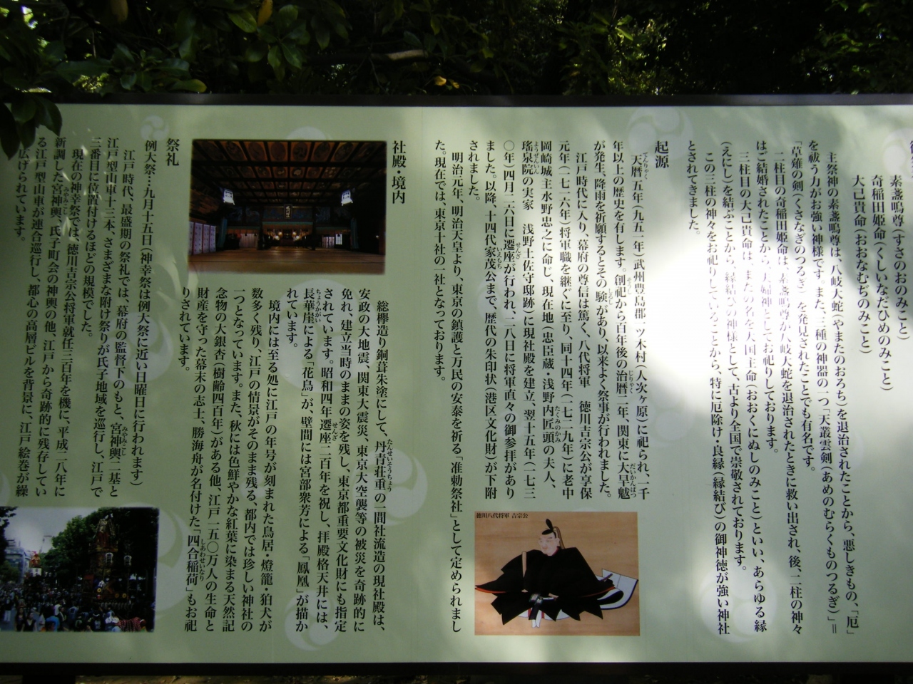 六本木の高台にある神社で、創建は951年ということで1000年以上の歴史がある大変由緒のある神社になります。境内には浅野土佐守邸跡や大イチョウなど見どころが多い神社でした。東京十社の一つに数えられ、多くの人が参拝に訪れていました。都会のど真ん中にありますが、静寂な雰囲気があって落ち着ける場所でした。