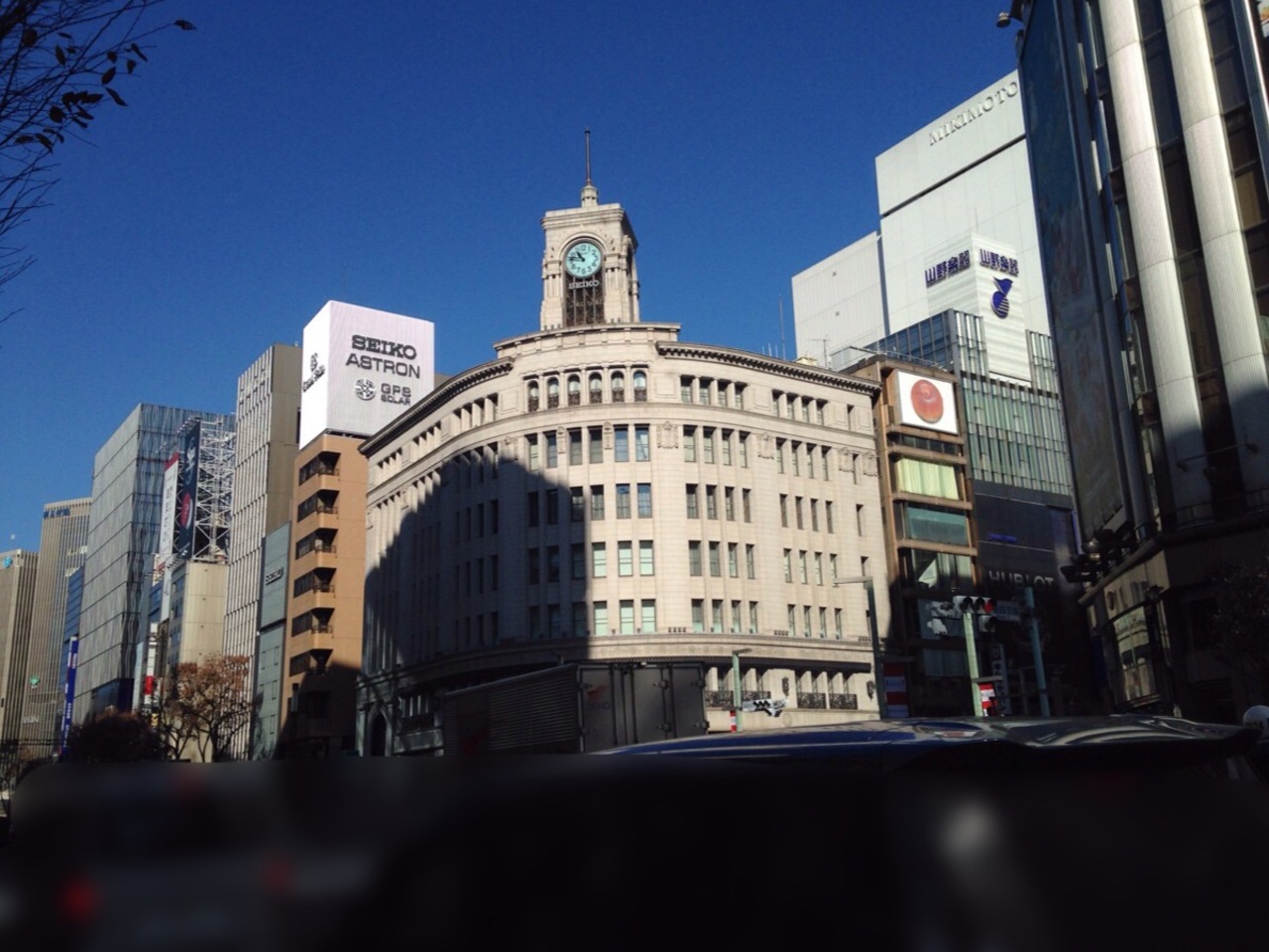 晴海通りと銀座中央通りが交わる銀座四丁目の交差点に面して建っています。現在の建物は1932年に建てられたものです。時計台のある外観は正に銀座のランドマークで交差点で信号待ちをしていると自然と目が引き寄せられます。