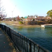 冷泉通りの桜並木に沿って流れるきれいな水の流れ