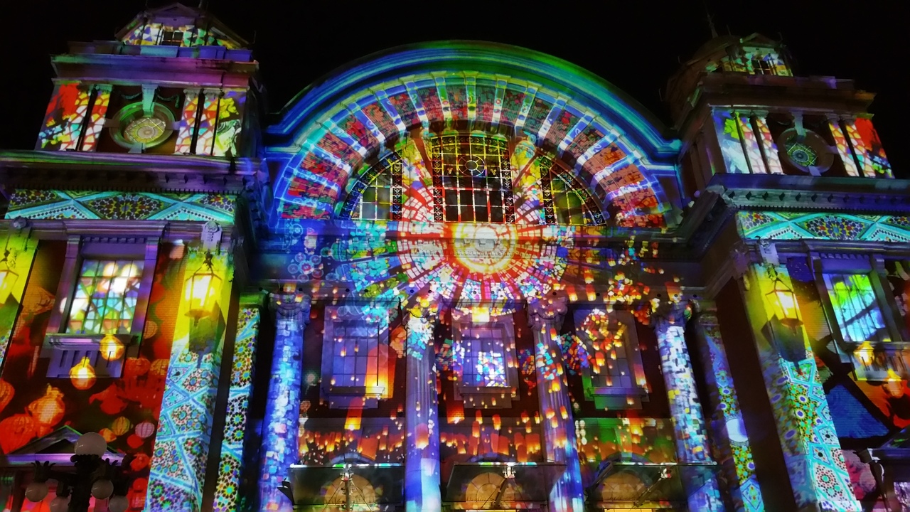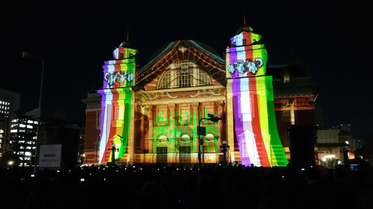 公会堂に映し出されるプロジェクションマッピングを楽しみに出掛けました。