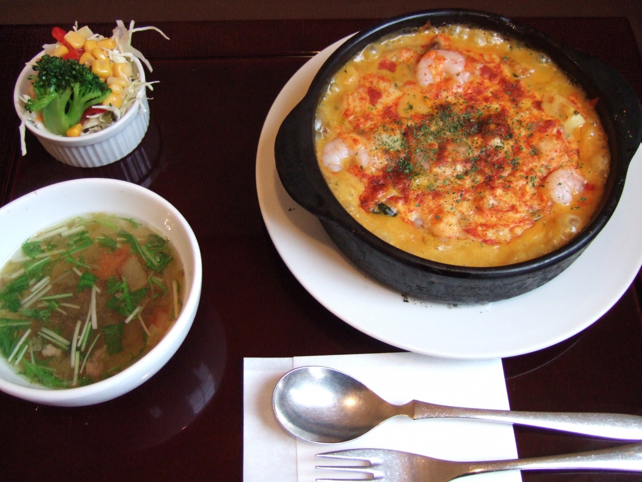 寒い日のランチに寄ってみました。温かいメニューを・・・と探すとドリアがあります。熱々で出てきましたが、ソースは絶妙に海老が効いており、志摩観光ホテルの伊勢海老のスープのよう。最後まで熱々でいただけましたが、オムカレーも甘さの中にスパイスが効き、とても美味しかったです。