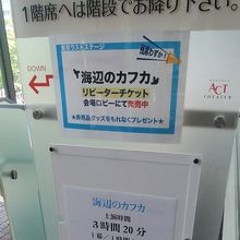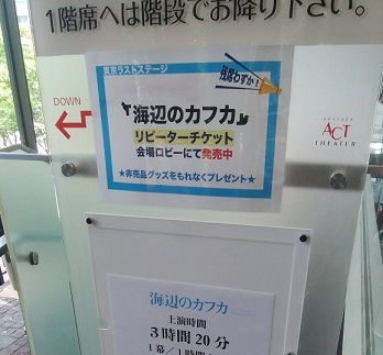 交互にずらした座席で比較的観やすいかとは思うのですが、こちらのホールはとにかくロビーが狭く座る場所もほとんどありません。開演前や休憩時間にゆったりする場所は皆無なうえ、座席で飲食もできないという残念なつくりです。