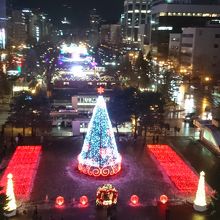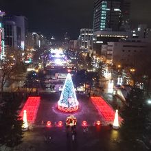 冬の札幌大通公園はイルミネーションで彩られます。テレビ塔も、普段から照明がつけられているのですが、ホワイトイルミネーションの時期は、テレビ塔も華やかに見えます。そして、テレビ塔に登ってみると、大通公園のイルミネーションが一望できます。無料で行ける2階から見るだけでも十分楽しめます。