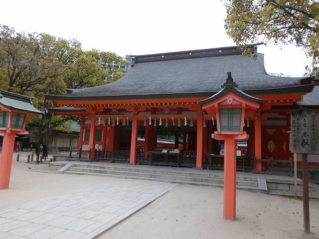 福岡市の中心部にある住吉神社。周囲はオフィス街で朱塗りの本殿などかなり色鮮やかです。住吉神社は各地にありますが、こちらの違いは全国2千数百社ある住吉神社の始祖とされていること。大阪の住吉大社、下関の住吉神社とともに「三大住吉」の1つといわれています。とても厳かな雰囲気がある境内でした。現在の本殿は江戸時代前期、黒田長政による造営。生き残ってきたんですねえ。