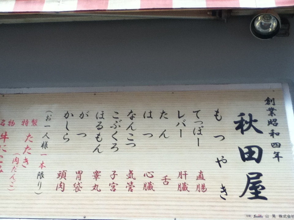 大門駅横の道路沿いにあるもつ焼き屋さん。かなり昔から営業している。店頭には大きな白い看板が掛けられている。店内は1階がテーブル席と立飲み、2階はテーブルが並んでいる。ビールや焼酎を飲みながら、たん、レバー、はつ、かしら等焼きとんを食べたが、焼とんは比較的よく焼かれていて全体的にまぁまぁ旨い。焼とん、煮込み等料理の種類は比較的多く値段はリズナブルで、焼とん等を食べながら飲むにはいいかもしれない。
