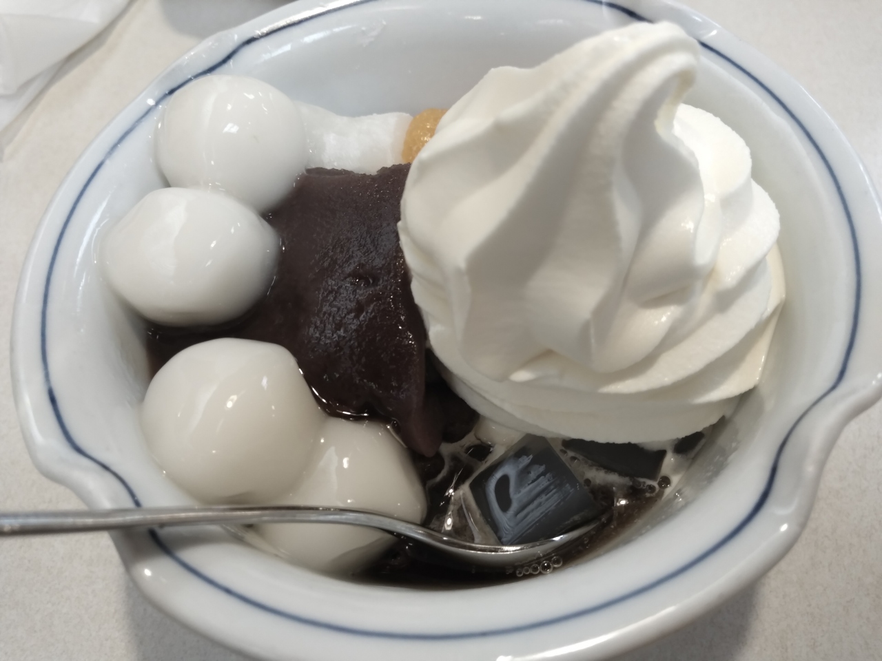 上野駅から中央通りを少々歩いたところにある甘味処です。店構えは昭和な雰囲気の昔からある感じです。夜の閉店少し前訪れたのですが、流石人気店!次から次へとお客さんが来店してました。オーダーした白玉あんみつは優しいお味で美味しかったです。