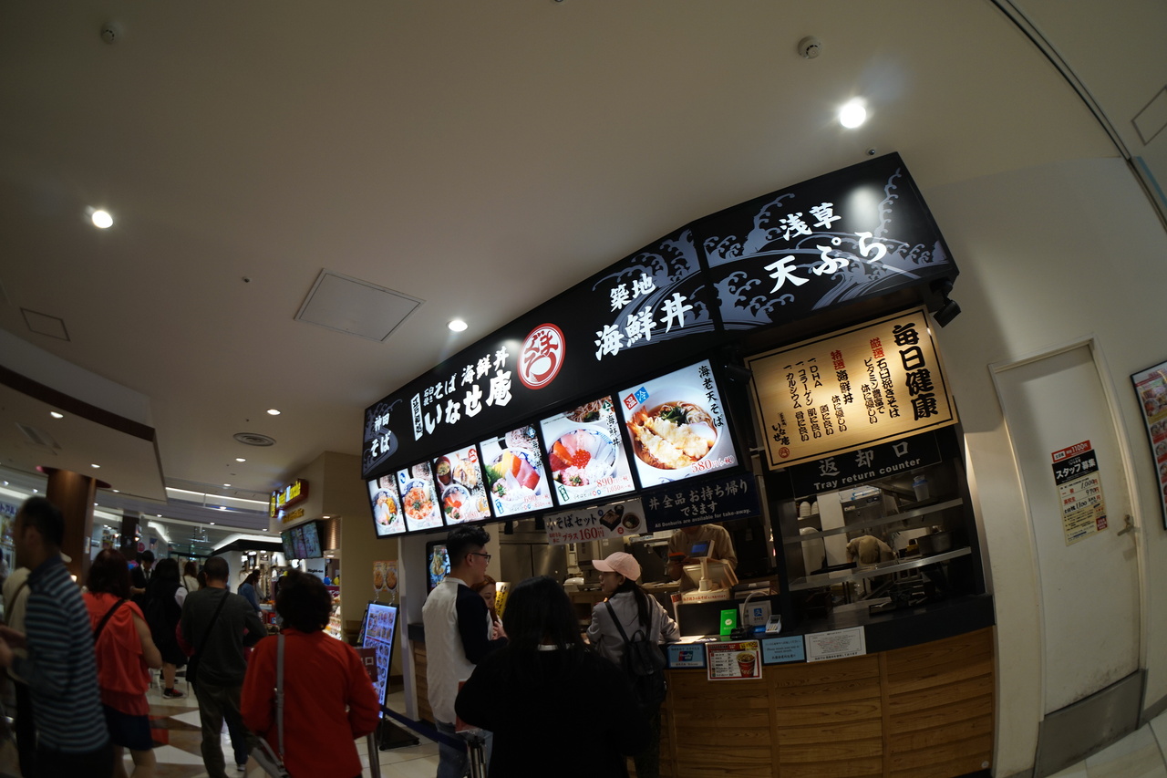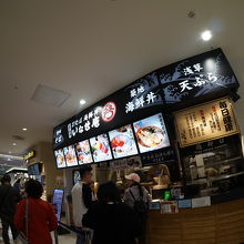 イオンモール成田店フードコートにある海鮮丼メインの神田そばや浅草天ぷらも販売しているお店です。私が行ったとき、並んでいる人が多くいて、その大半が外国人でした。海鮮丼が690円と、他のお店に比べて安いから?