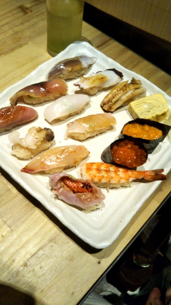 「にぎにぎ一 八重洲本館」に初めて行きました。ビルの地下の奥の方にお店がありました。握りを注文しましたが、江戸握りで寿司飯は赤酢を使用しています。久しぶりに赤酢の握り寿司をいただくことが出来、粋な江戸の味が楽しめました。