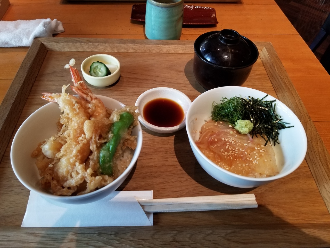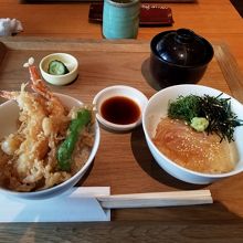 天丼と鯛漬丼。料理の量はかなり小さく値段の割にバランスが合わない。