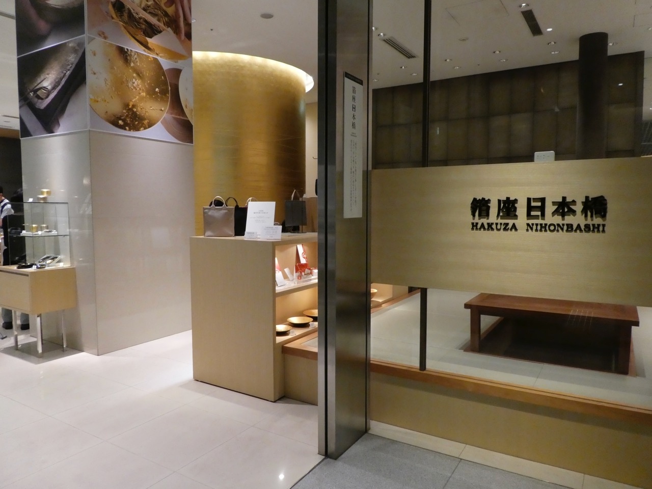 金沢で有名な箔座の東京のお店です。金沢同様、黄金の壁(もしかしたら柱、かも)があって目立ちます。
