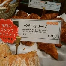 「パヴェオリーブ」300円(税込)を購入。オリーブとゴータチーズを入れているようだけど、ゴーダチーズはあまり感じないかな…。