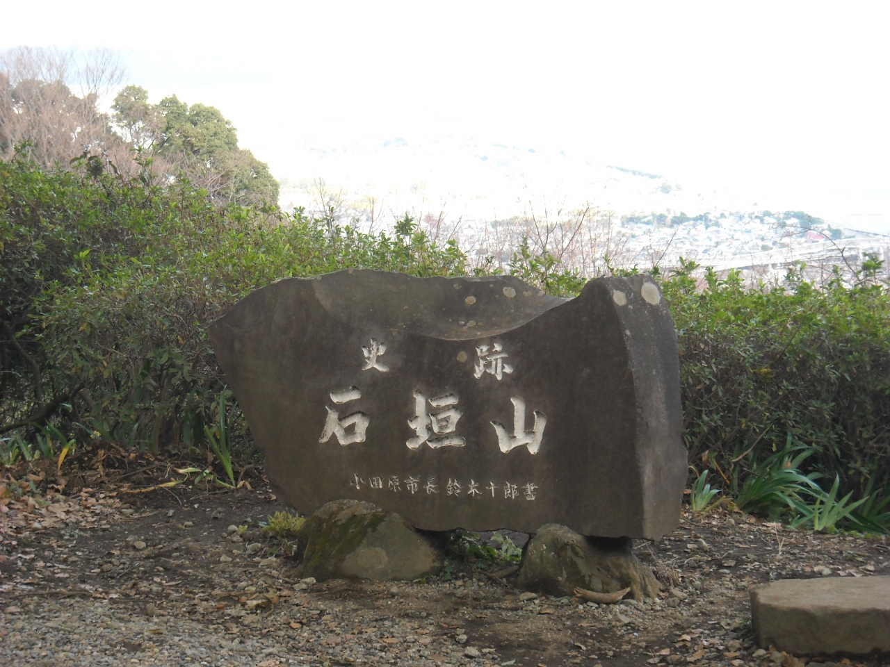 小田原・厚木道路の終点にあるのは知っていましたが、登ったのは初めてでした。相模湾を一望できる絶景ポイントでもありました。中学の歴史の授業でさえ紙で造った城というほど調査の遅れた時代でした。実際は岩国城ほどの規模風格があったようです。しかし、北条氏が建築を知らぬわけもなく・・・・歴史を感じました。