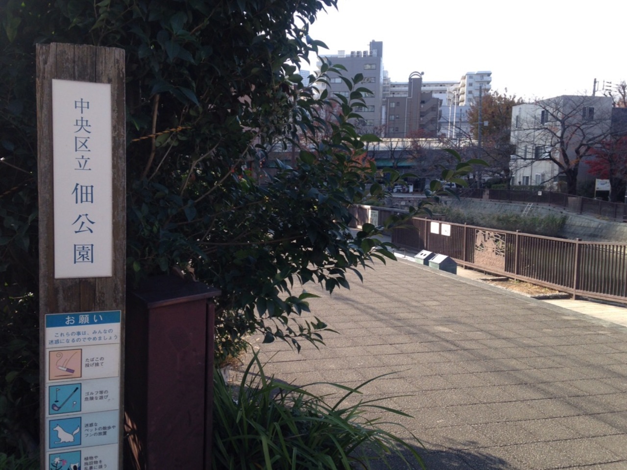 月島から都道473号を渡って佃の界隈に入って住宅街を歩くと赤い佃小橋がありました。渡るのは佃川支川、その行き止まりは佃堀でこの辺り一帯が公園になっています。お堀の水と赤い小橋、そして背景に高層マンション群が一緒に見えて珍しい光景でした。
