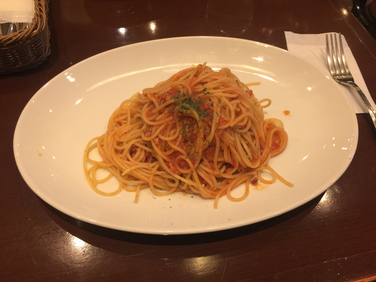イカとタコのラグートマトソーススパゲッティにしました。美味しいです(^^)