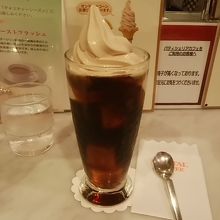 が、私が惹かれたのは、コーヒー味のソフトクリーム。「コーヒーフロート」670円(税込)をお願いしました。たっぷりサイズのコーヒーの上にソフトクリーム♪