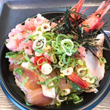 宮津の海のすぐそばにある道の駅。中にはカフェと海鮮レストランがあります。海鮮レストランは自分で好みの魚をチョイスしてどんぶりにするスタイル。焼き魚やあら汁もありました。ワクワクしながら海鮮丼を作りいただきました。魚は新鮮で本当に美味しかった。
