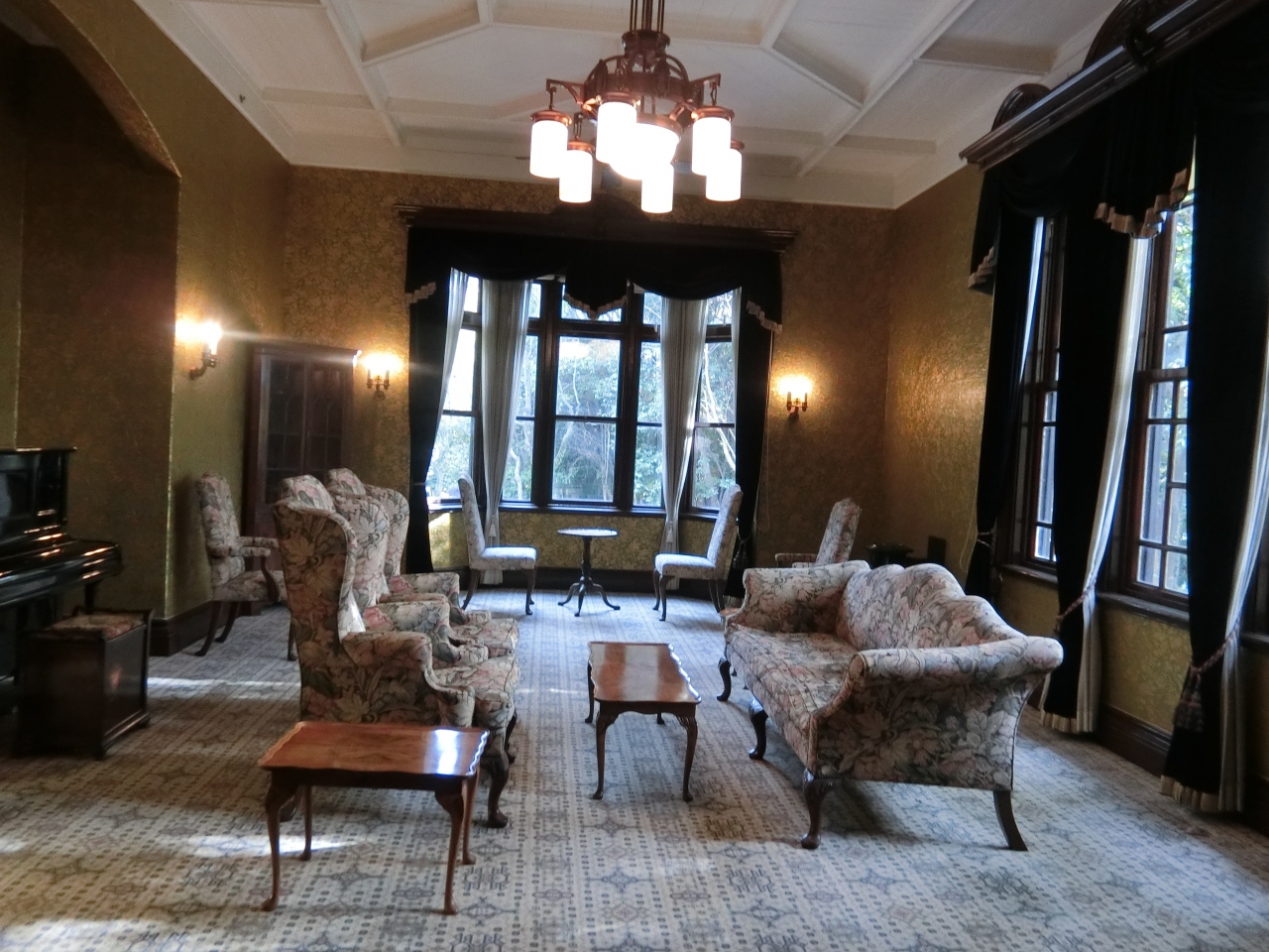 入船山記念館は、旧呉鎮守府司令長官官舎で重要文化財に指定されています。明治22年に開庁しましたが、明治38年に地震で崩壊し、その後復原されています。中は和館と洋館に分かれていて、和館は長官と家族の住居として使用されていたものでとても広いです。洋館のお部屋は金唐紙という素材の壁紙が張られ、重厚感がありました。応接間、食堂、客室などもあり、どれも素敵なお部屋でした。。