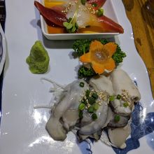 貝焼きが食べたくてお邪魔しましたが満席で忙しいから(?)か今日はできないと断られてしまいました。それでもセットで頼んだお料理はアワビ粥から始まりお刺身、焼き魚、蟹の醤油漬けと全部美味しくて大満足でした。次こそは貝焼きをいただきたいです!