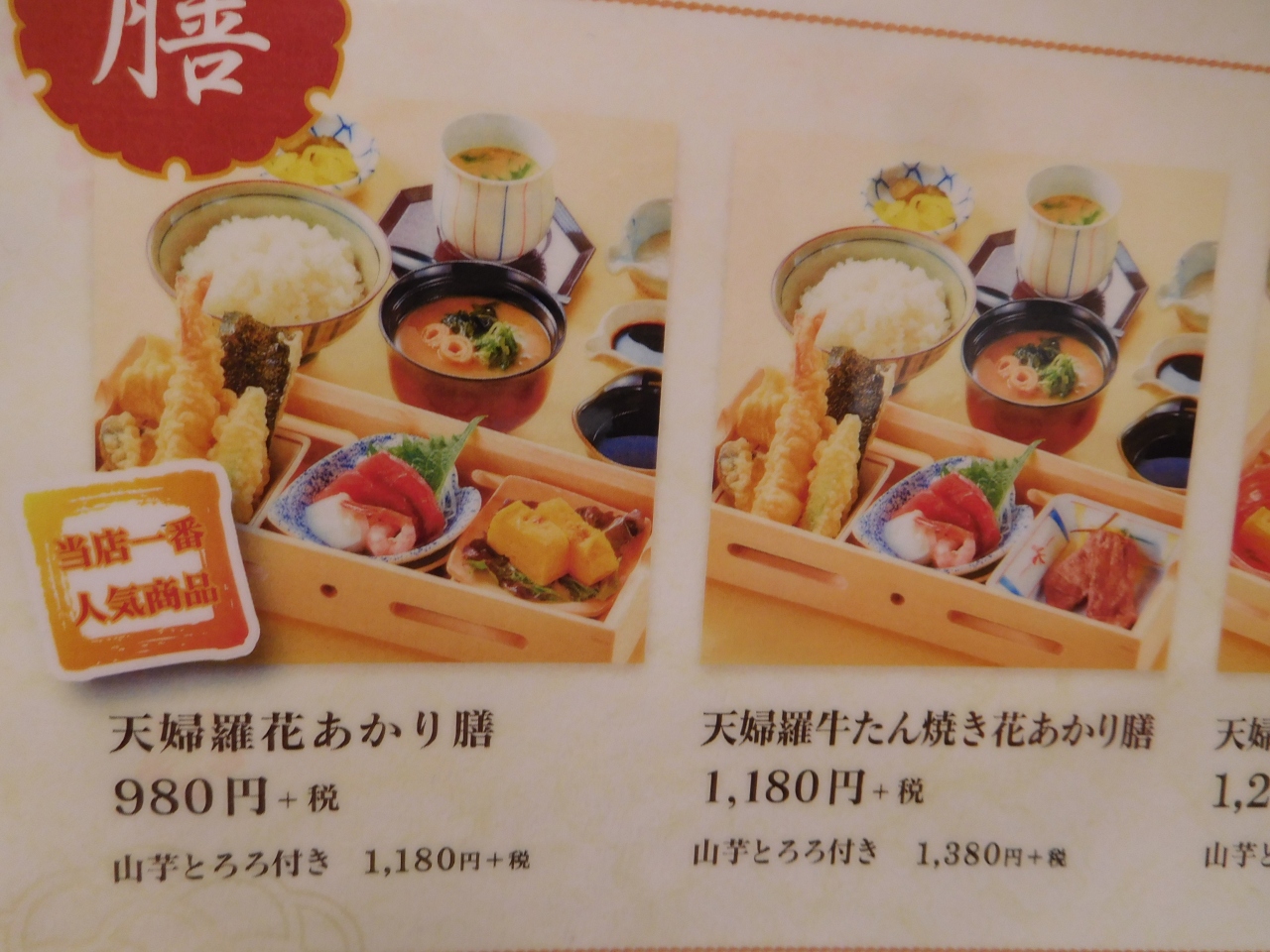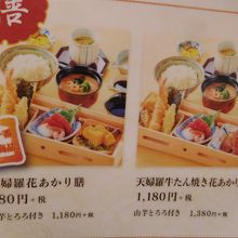 天婦羅牛タン焼き花あかり膳を注文しました。