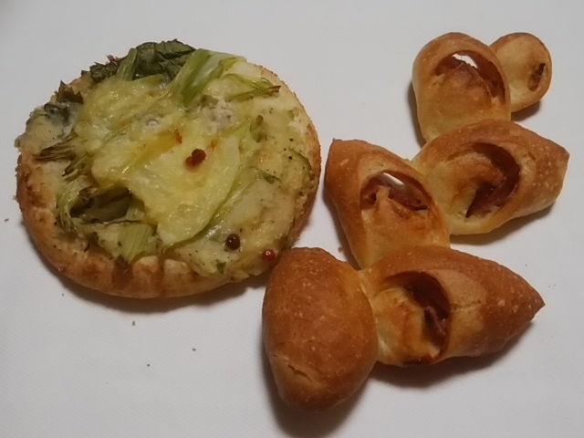 「セロリとゴルゴンゾーラのフォカッチャ」518円(税込)と「柚子胡椒のエピ」324円(税込)です。なかなかお高い…。